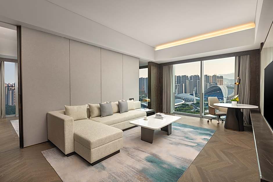 This suite features a hot tub. Featuring free toiletries and bathrobes, this suite includes a private bathroom with a walk-in shower, a bath and a hairdryer. The spacious air-conditioned suite features a flat-screen TV with cable channels, soundproof walls, a mini-bar, executive lounge access as well as mountain views. The unit has 1 bed.